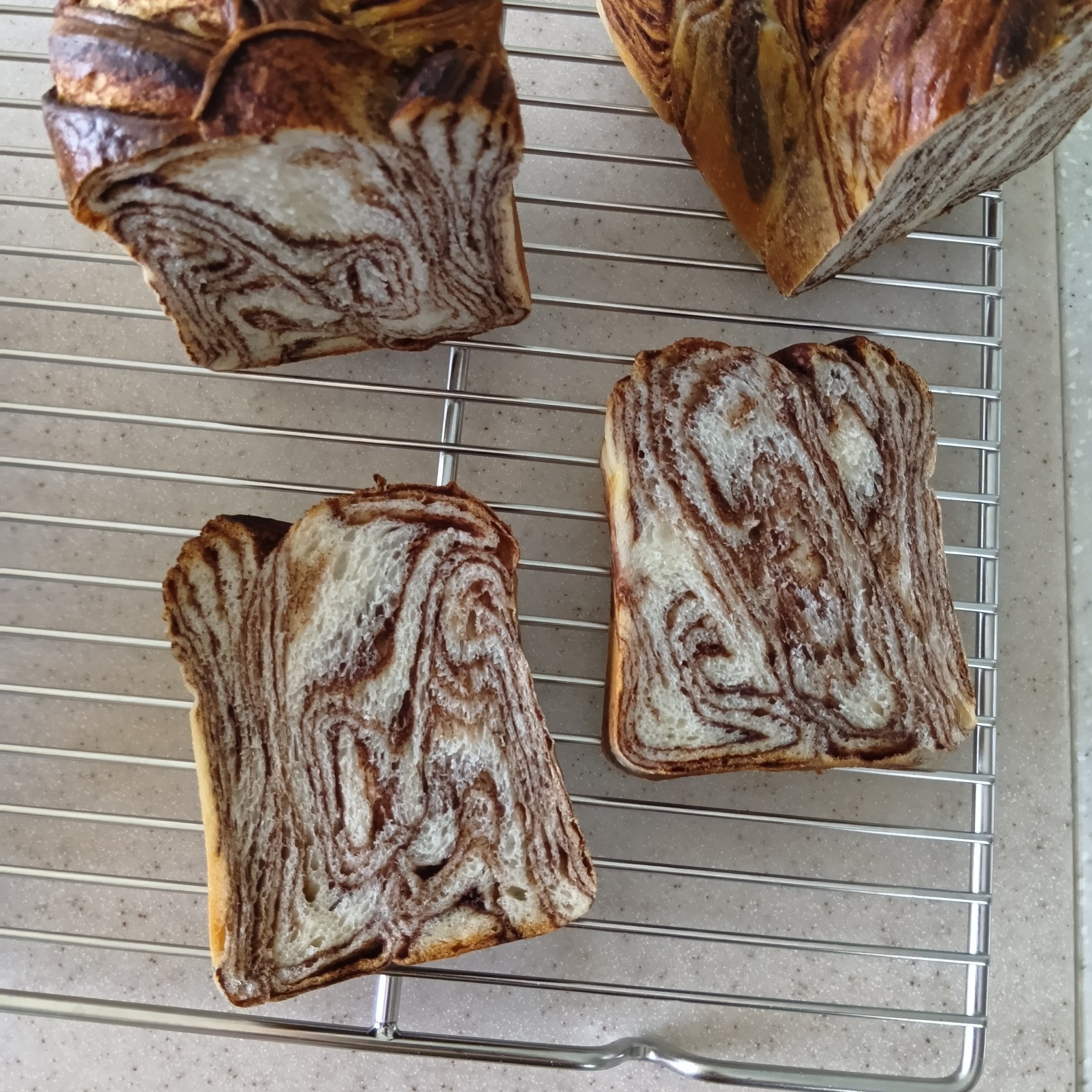 有機ココアを使った自家製チョコシートを折込みマーブル模様に、もっちり生地で甘さ控えめです
