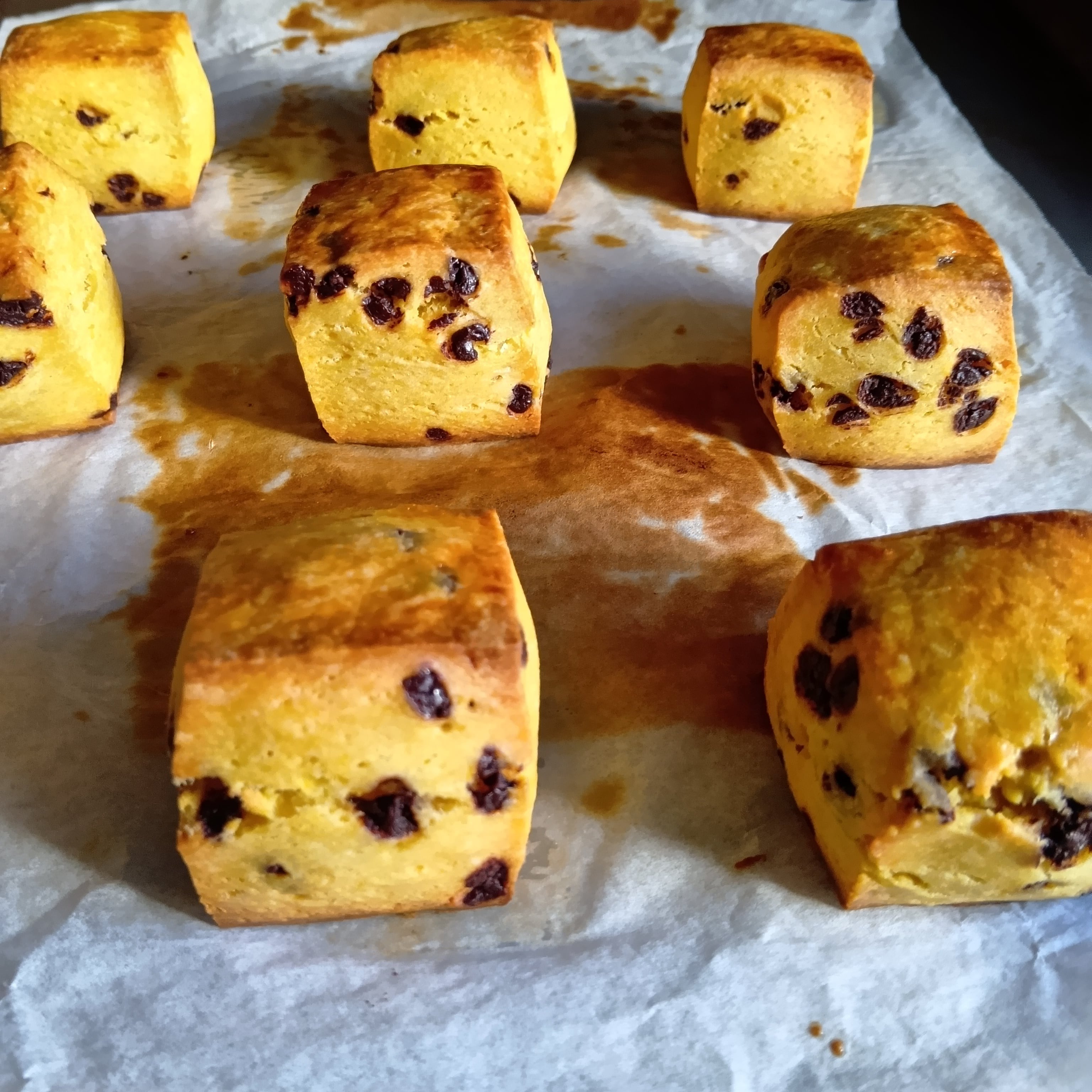 米粉も配合し、時間をかけて発酵させたしっとりスコーン。裏ごしかぼちゃとオーガニックチョコチップ入り