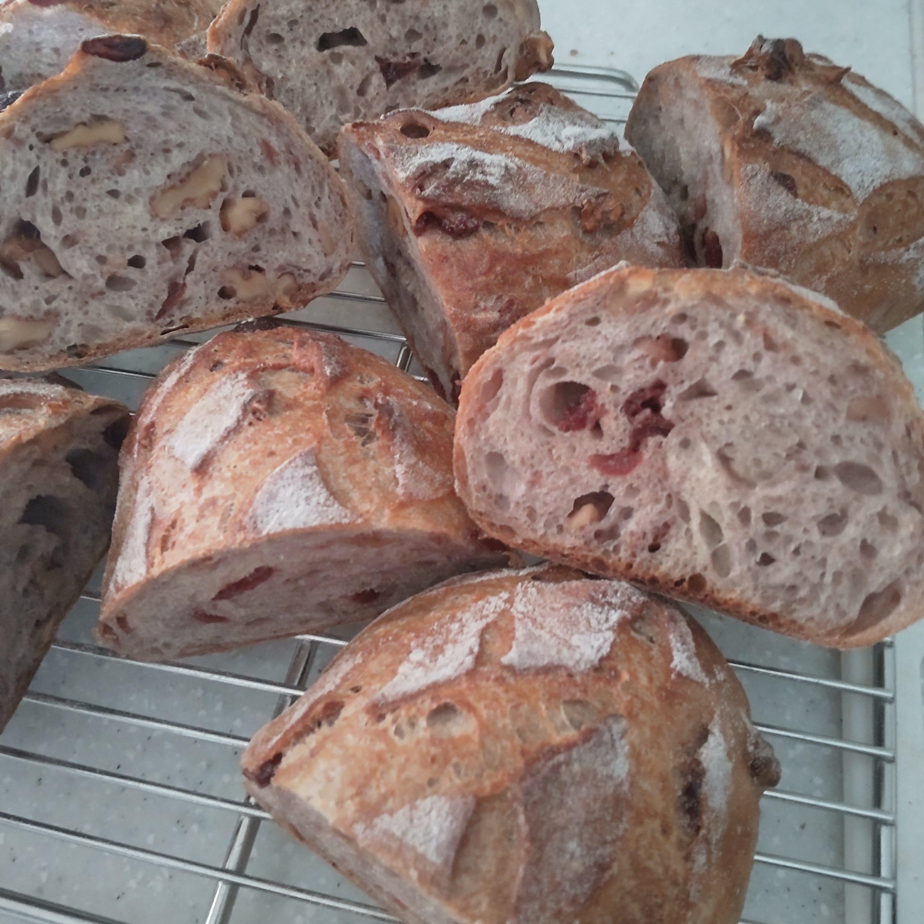 カンパーニュ生地にクルミとオーガニッククランベリーをたっぷり入れた、人気のパンです